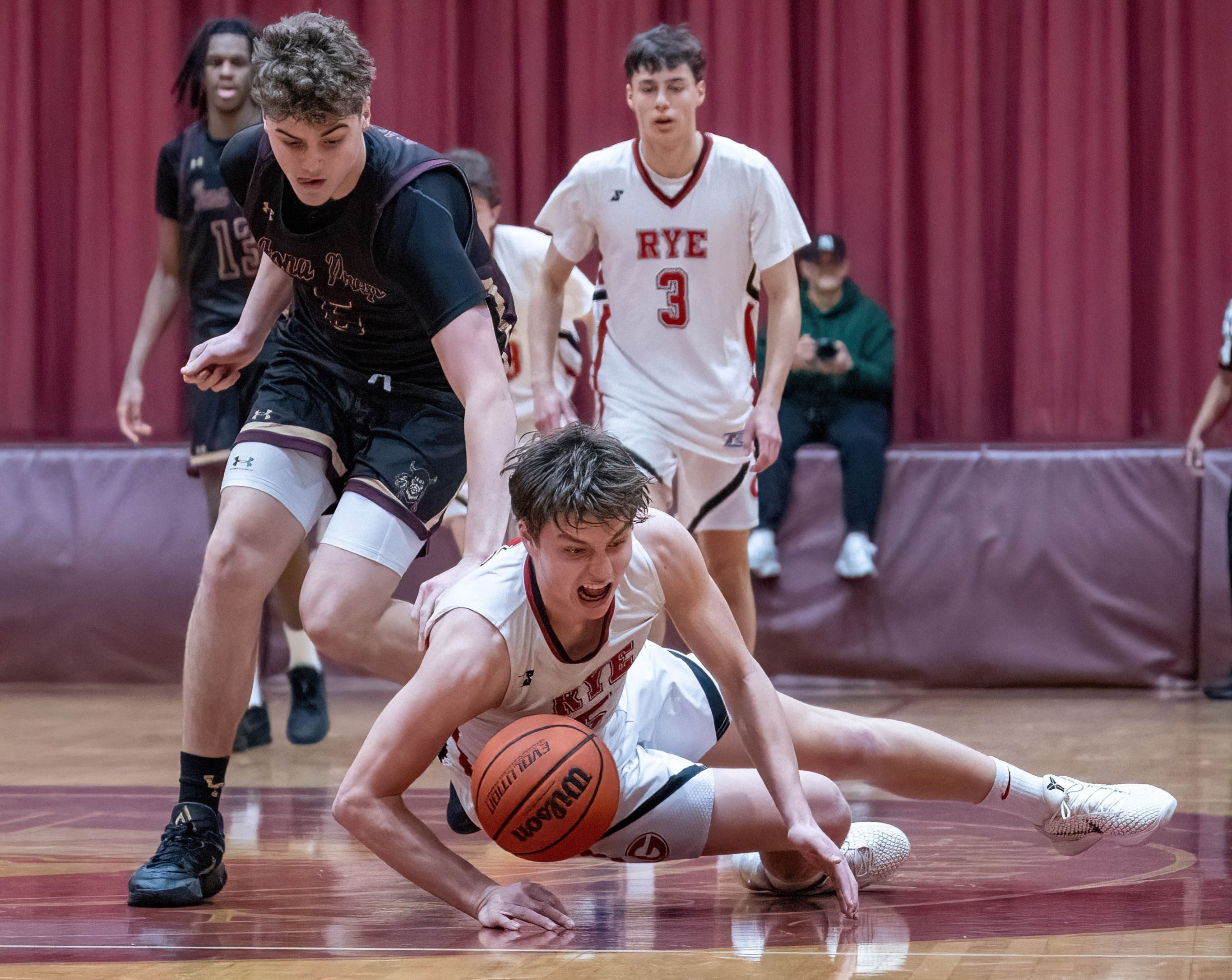 With 2:52 left in the third, Rye’s lead had swelled to 15. But with three minutes left in the game, Rye’s lead shrank to three, 53-50. And with three seconds left in regulation, Rye led by only two, 57-55.
