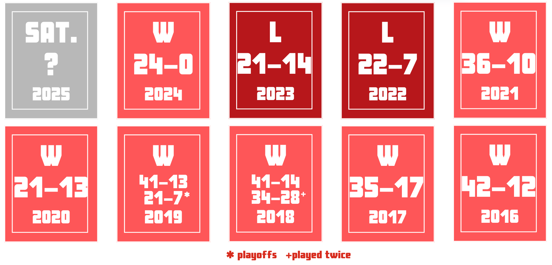 Rye has owned the rivalry of late. The Garnets went 12-1 vs. Harrison in the 2010s and 3-2 thus far in the 2020s. That 15-year surge swung the overall series in Rye’s favor.
