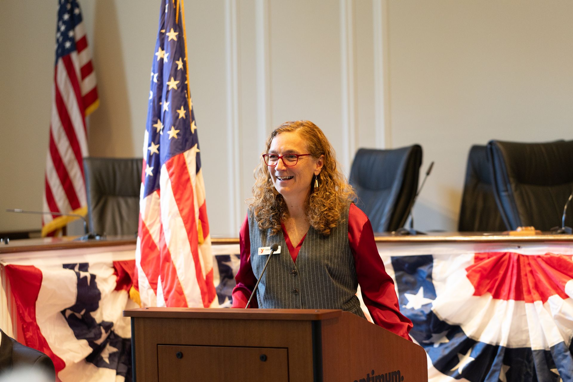 “Honoring veterans is a shared responsibility,” she said, noting that in 1941, the national YMCA was one of several organizations that founded the USO (United Service Organizations). She then told the tale of a French Bulldog named Mutt, who as a member of the YMCA Cigarette Dog delivery service, was trained to deliver cigarettes and “small comforts” to soldiers in the trenches